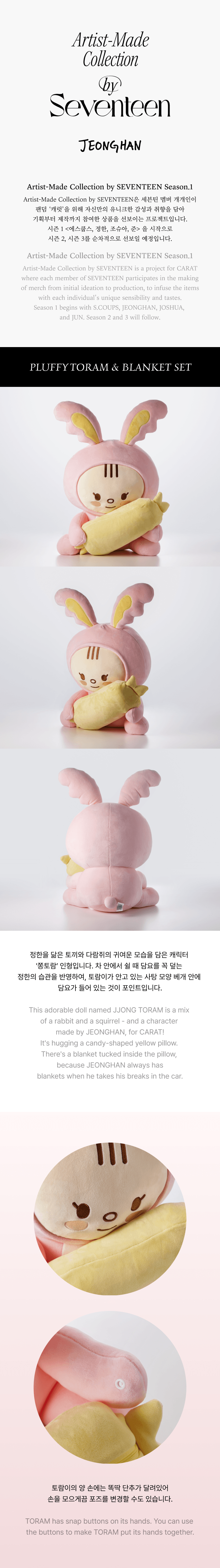 2ND PRE-ORDER PRE-ORDER PERIOD: 18:00pm September 14th~ 2ND PRE-ORDER RELEASE DATE: December 7th 2023 - JEONGHAN PLUFFY TORAM & BLANKET SET + 1 PHOTO CARD Plush Toy: SHELL: 95% POLYESTER, 5% POLYURETHANE, FILL1: POLYESTER FIBER, FILL2: POLYETHYLENE FOAM / 280*490*250mm Blanket Cover: SHELL: 95% POLYESTER, 5% POLYURETHANE, LINING: 95% POLYESTER, 5% POLYURETHANE / 380*140mm Blanket: 100% POLYESTER / 870*730mm Stiker: PAPER / 150*150mm Making logo & Photo card: PAPER / Making Logo 100*100mm, Photo card 55*85mm